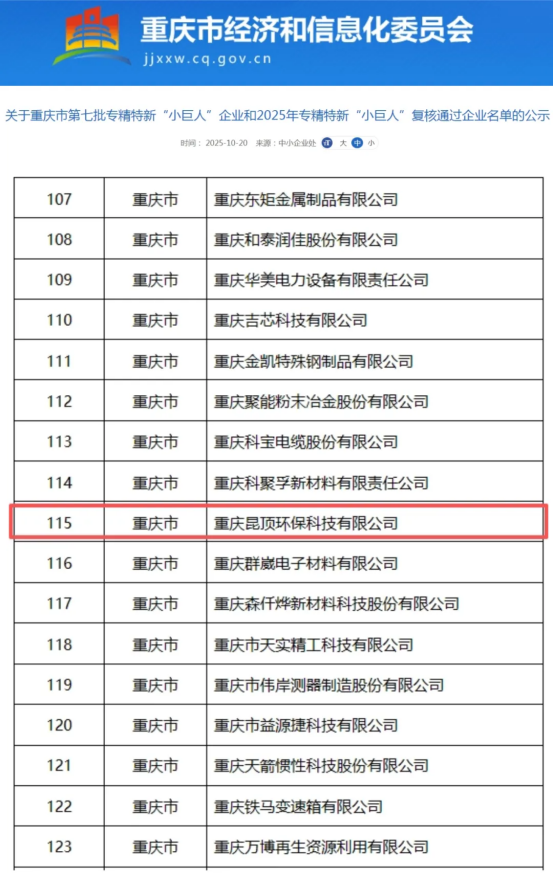 喜訊!近日,國家工業(yè)和信息化部專精特新“小巨人”企業(yè)復(fù)核結(jié)果正式揭曉——昆頂環(huán)保再獲國家工信部專精特新“小巨人”復(fù)核認(rèn)證,蟬聯(lián)中小企業(yè)最高榮譽(yù),穩(wěn)居環(huán)??萍碱I(lǐng)域“領(lǐng)頭雁”。