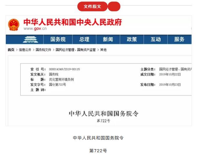 中華人民共和國(guó)國(guó)務(wù)院令第722號(hào)《優(yōu)化營(yíng)商環(huán)境條例》已經(jīng)2019年10月8日國(guó)務(wù)院第66次常務(wù)會(huì)議通過,現(xiàn)予公布,自2020年1月1日起施行。總 理 李克強(qiáng)2019年10月22日優(yōu)化營(yíng)商環(huán)境條例