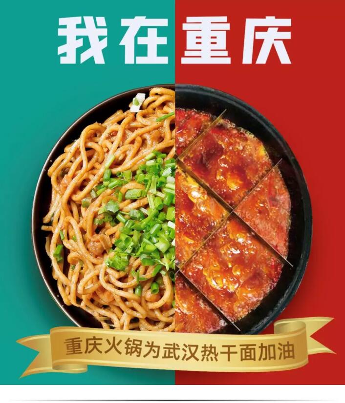 匹夫有責(zé),義不容辭,相信在全體中華兒女的共同努力下,我們一定會打贏這場抗"疫"攻堅戰(zhàn)!春天會如約而至,冬天失去的,我們必將奪回來!重慶火鍋為武漢熱干面加油!